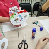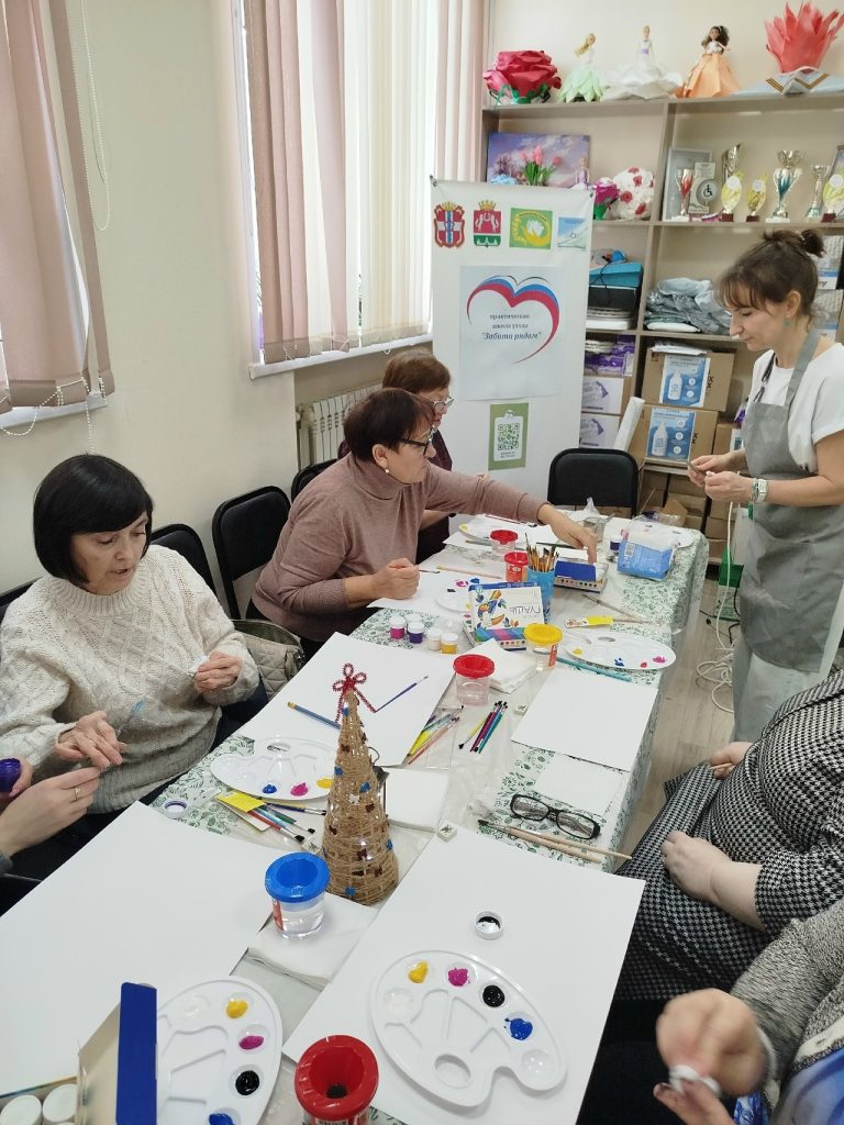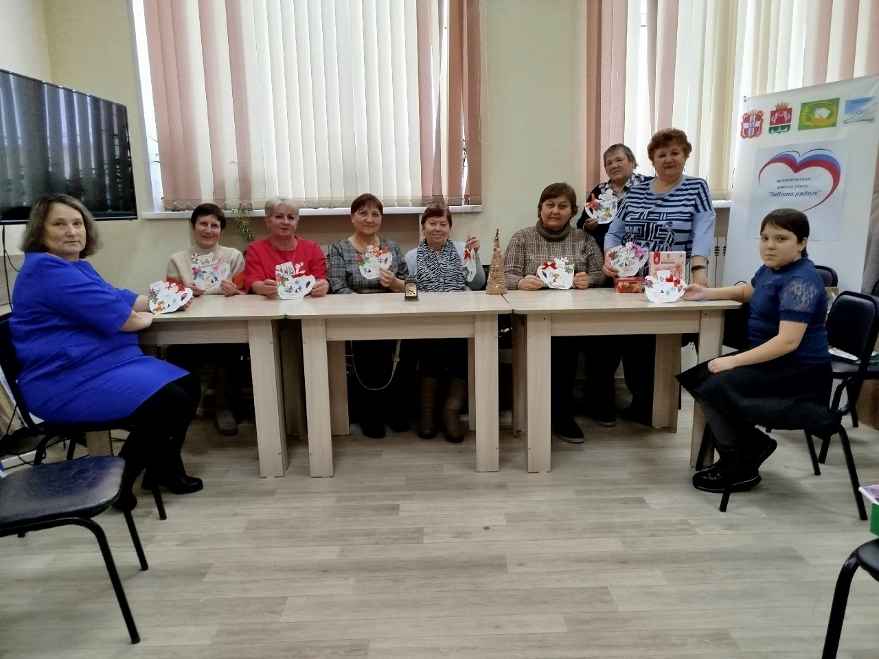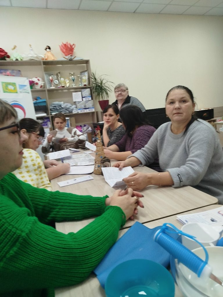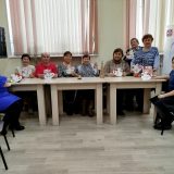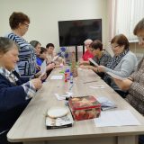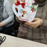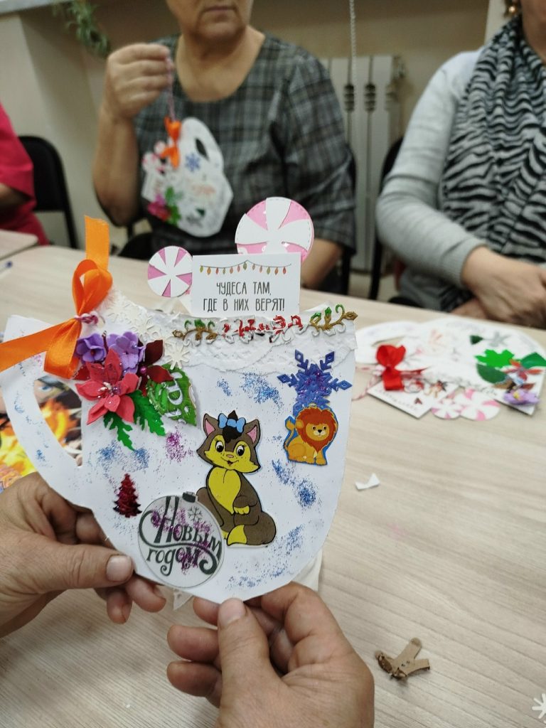 Члены Тюкалинской местной организации ВОИ 18 декабря 2025 года собрались на мастер-классе, где в технике скрапбукинг создавали новогодние открытки-сюрпризы. Открытки были в виде чаши — композиции с поздравительными надписями, ёлочками, снежинками и другими элементами. У каждого участника получилась своя авторская работа — весёлая и красочная, которую можно подарить близким.