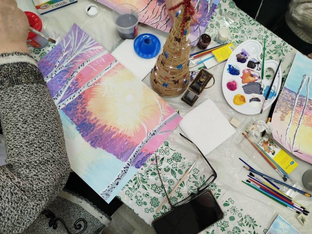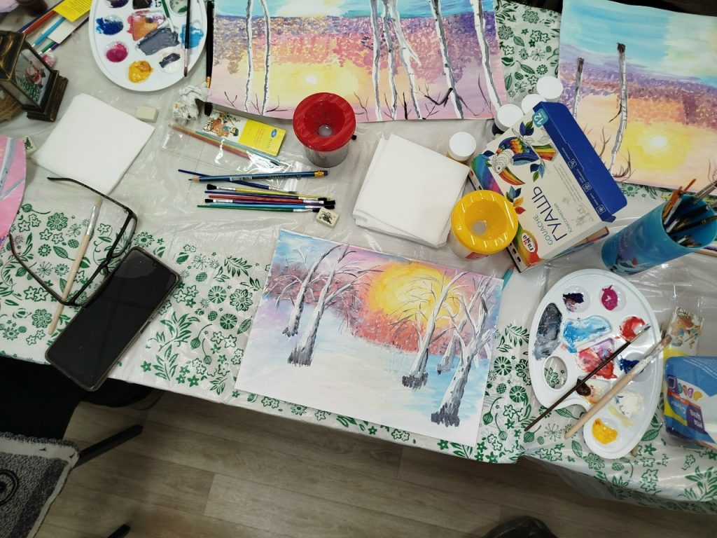 С трепетом и легкой неуверенностью члены Тюкалинской местной организации ВОИ приступили к мастер-классу по живописи гуашью 10.12.2025. Поначалу на бумаге робко проступали лишь неуверенные мазки, но вскоре… О, чудо! На полотнах стали рождаться небеса, пробилось ласковое солнце, заиграли пушистые облака. И как же неповторимо у каждой участницы сияло это солнце, как по-своему росли деревья, словно отражая трепетные движения души! Когда мастер-класс подошел к концу, в глазах, собравшихся отражалось искреннее изумление: неужели этот зимний пейзаж, полный тихой красоты, сотворили они сами? Это была еще одна маленькая победа, дарованная сердцу. С глубокой благодарностью все участники выразили признательность Стадник Ирине Валерьевне, педагогу-художнику из организации «Дети Ангелы», за её чуткость и вдохновение.