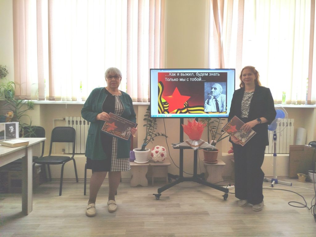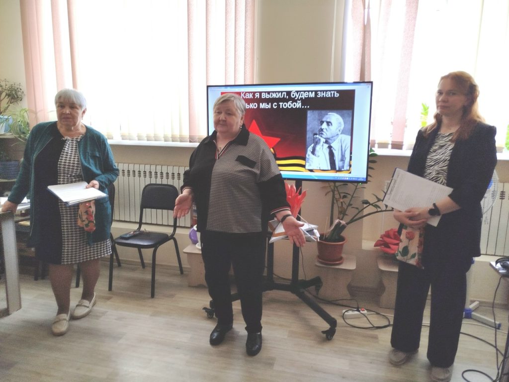 Константин Симонов, выдающийся русский советский прозаик, поэт, драматург, киносценарист, общественный деятель, журналист и военный корреспондент… Его многогранному таланту посвятили свое мероприятие специалисты Районной библиотеки имени Л. Иванова, Яковлева Е.Н. и Заливина К.Л., организовав незабываемую встречу для членов Тюкалинской местной организации ВОИ.С замиранием сердца слушали присутствующие стихи Симонова в проникновенном исполнении знаменитых артистов.