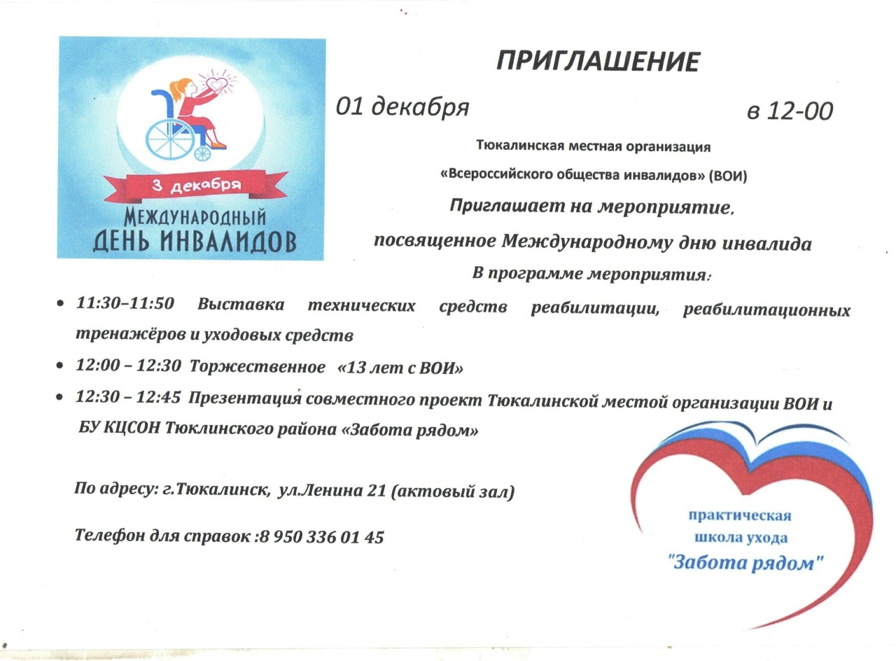 На территории Тюкалинского муниципального района уже на протяжении 13 лет успешно работает Тюкалинская местная районная организация ВОИ. Данная организация открыта для всех людей с инвалидностью и предлагает разнообразные занятия и мероприятия для своих участников.